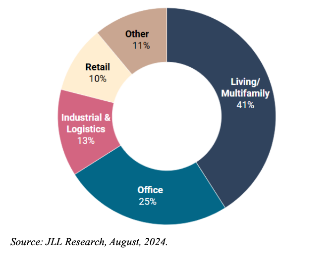 The commercial real estate debt market faces a significant maturity wall, with over $2.1T in debt expiring between 2024 and 2025. Traditional bank retrenchment has created opportunities for private credit providers, particularly in specialized sectors like multifamily and healthcare.Private credit markets have demonstrated remarkable growth, expanding from $1T in 2020 to approximately $1.5T in early 2024, with projections reaching $2.8T by 2028. This growth has been accelerated by bank failures in 2023 and subsequent regulatory pressures. Demographics are driving compelling opportunities in both healthcare and multifamily sectors. The 85+ population is projected to more than double by 2040, creating substantial demand for senior housing and healthcare facilities, while strong renter demand from younger generations supports multifamily fundamentals. Despite a challenging rate environment, multifamily remains the preferred asset class for commercial real estate investors heading into 2025, with vacancy rates projected to stabilize at 4.9% and average annual rent growth at 2.6%.